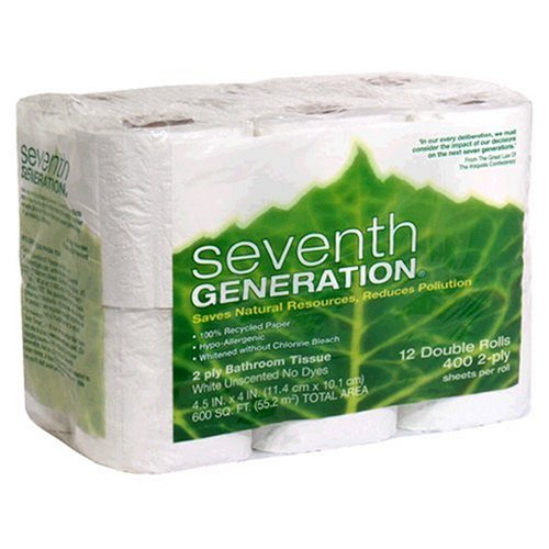 Seventh Generation, Bathroom Tissue 2-ply/400 Count, white unscented, 12 Rolls Specification Free Shpping